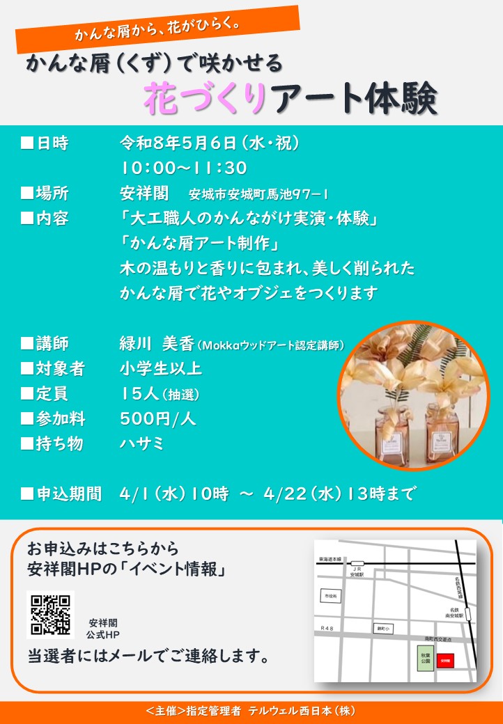 『かんな屑(くず)で咲かせる花づくりアート体験』 5/6(水・祝)に開催します。★申込★は、ここから!